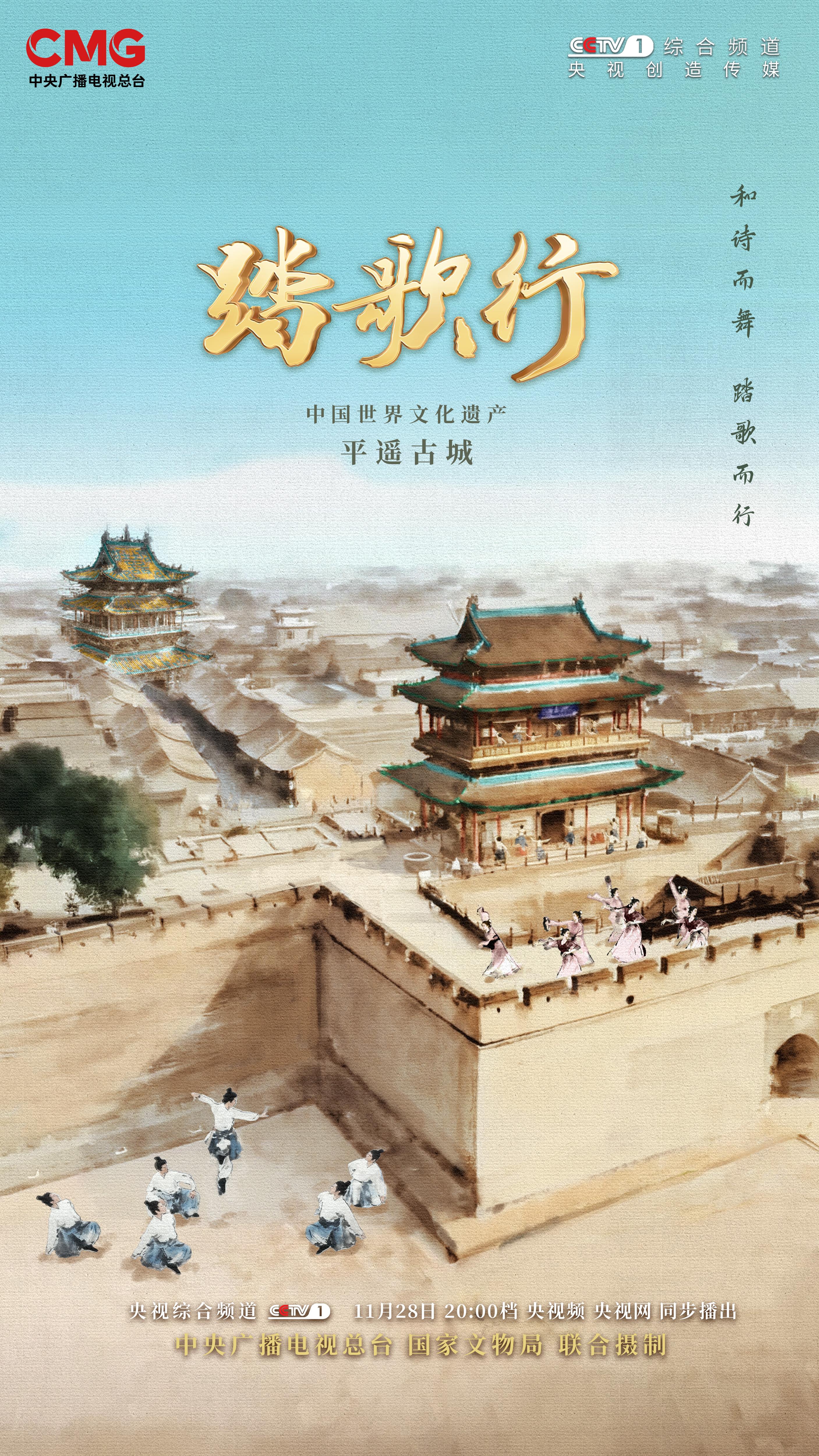 11月28日20:00档,由中央广播电视总台和国家文物局联合推出的大型文化探访节目《踏歌行》将在央视综合频道(CCTV-1)播出第七期,央视频、央视网同步播出。节目将走进中国世界文化遗产——平遥古城,带观众推开“时空之门”,沉浸式领略中国古人的营城智慧、生活哲学以及晋商风采,深度探索平遥古城的历史价值、文化价值。