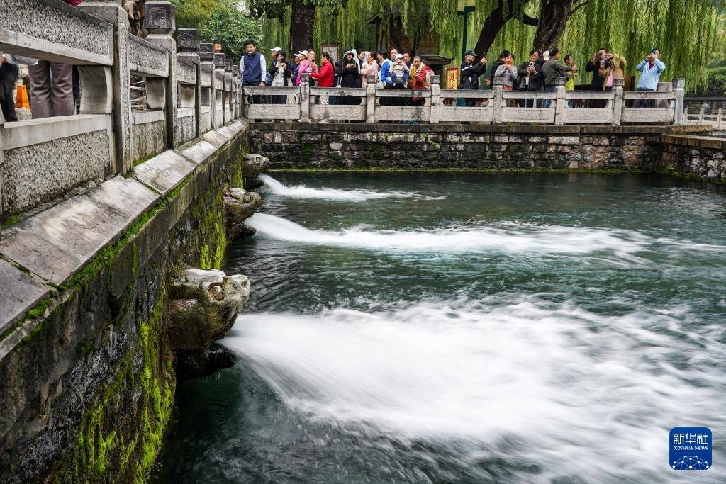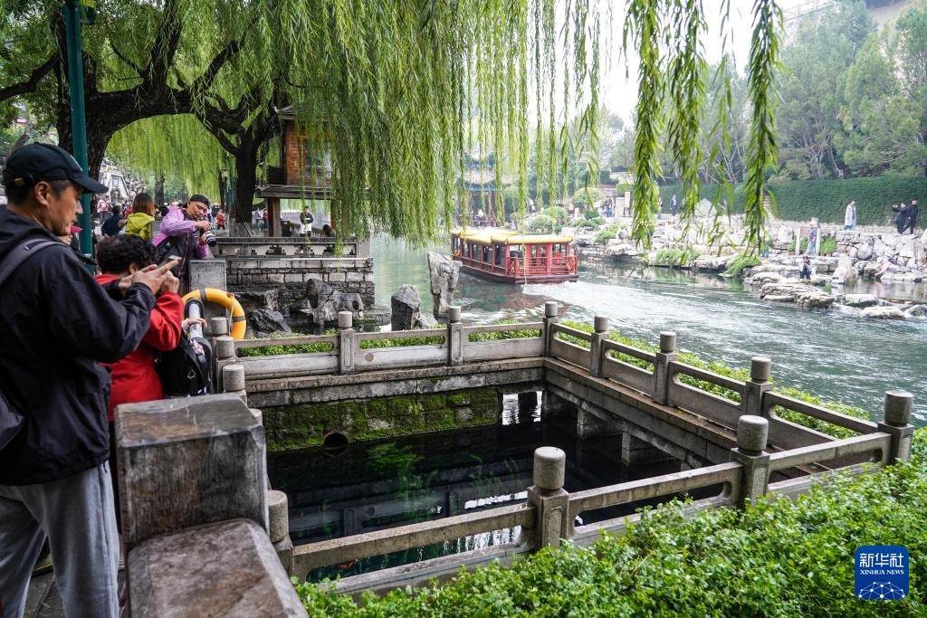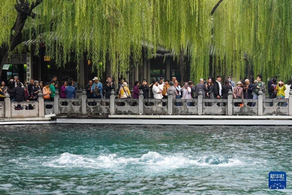 r受近期降雨影响,山东省济南市群泉奔涌,吸引游客前来观赏。